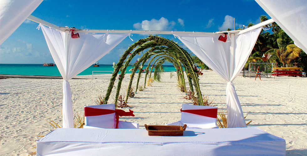 There are 4 room types in this resort, including the Beach Bungalows, Suite, Water Villas and Two Bedroom Water Villas. Although it does not provide full services, the core services include dining and some recreational services, like spa and diving, and last but not least, some special services, like wedding. The wedding service features the Bouquet, Ceremony, Photo-taking and Bridal make-up.